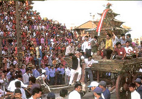 Bisket Jatra is celebrated in the ancient city Bhaktapur and its neighbouring areas. the festival is celebrated by replaying a drama passed on over centuries. God Bhairav and Goddess Bhadrakali are placed in a large chariot and pulled through crowds of cheering onlookers, when the chariot reaches a sloping open square, tug-of-war takes place between the inhabitants of the upper and lower parts of the town. winners are considered to be blessed with good fortune for the coming year. The festival concludes with several days of dancing and worships.