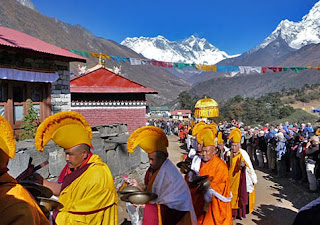 Mani Rimdu is the most important festival in Tengboche. The festival is comprised of nine days of various ceremonies and meditation ( Drupchen). It is concluded by a special blessing ceremony given by Tengboche Rinpoche to the public and the world renowned mask dances are performed by the monks at the Tengboche Monastery.